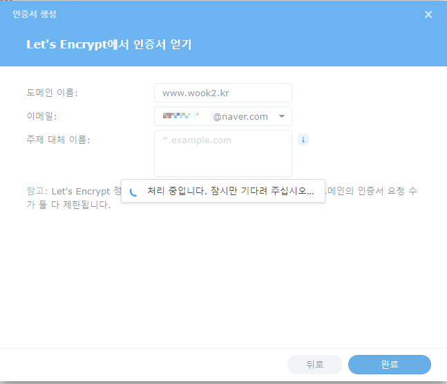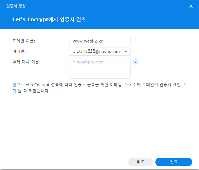 Let's Encrypt ์ ํ ํ ๋ค์์ ๋๋ฌ์ฃผ์ธ์.