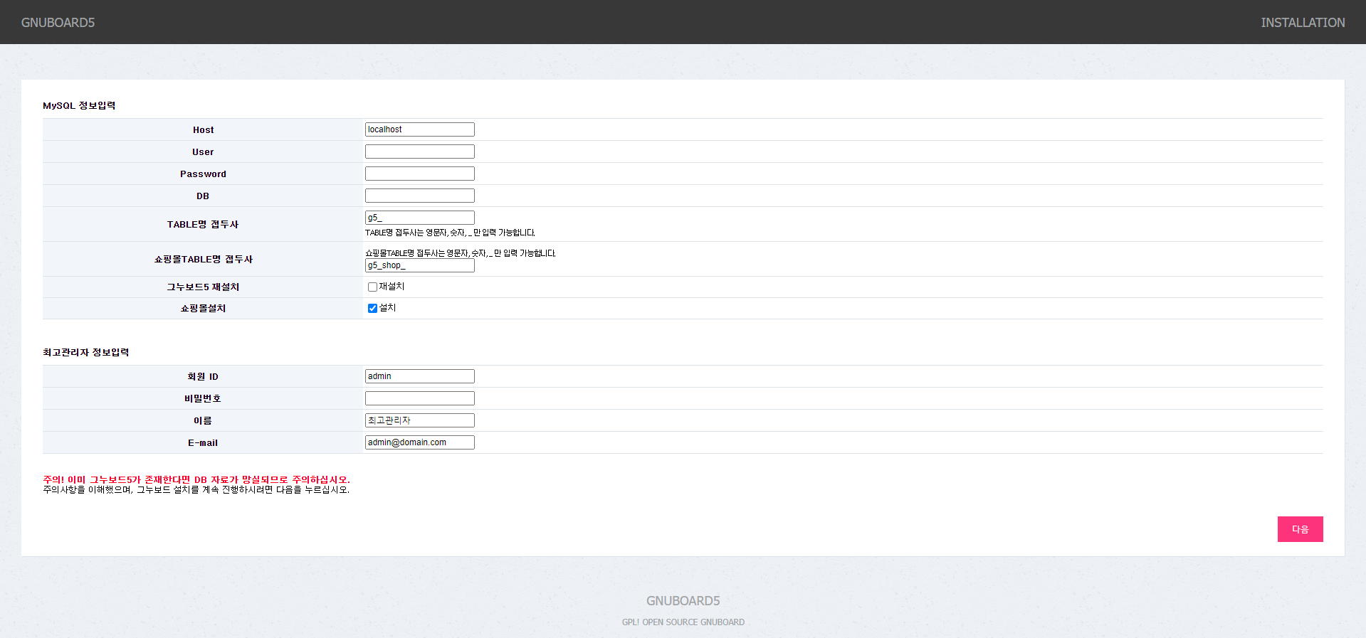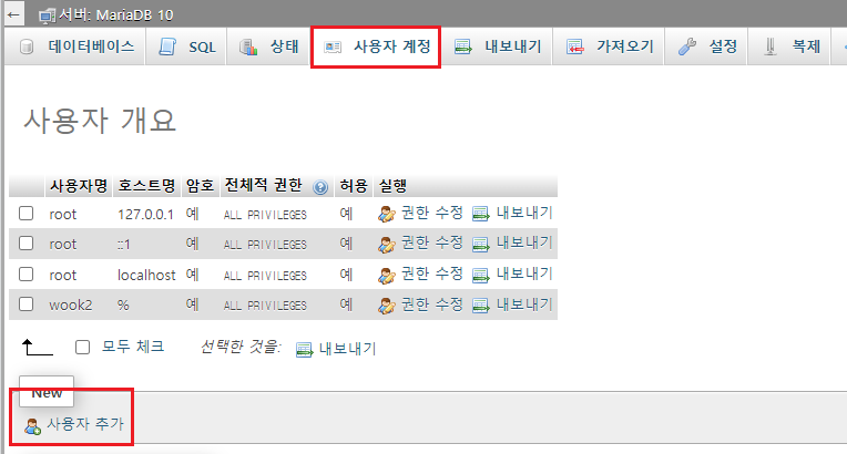 user ์ ๋ ฅ์นธ์ ์๊น phpmyadmin์์ ์์ฑํ ์ ์ ์ ์ด๋ฆ๊ณผ ํจ์ค์๋๋ฅผ ์ ๋ ฅ.