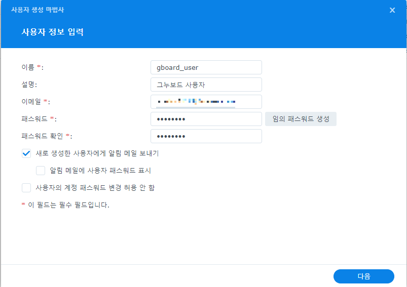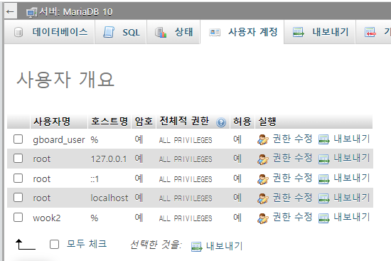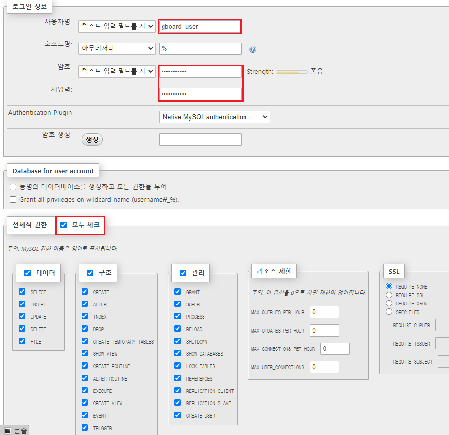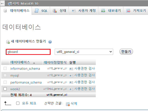 gboard_user ์์ฑ๋ ๊ฒ์ ํ์ธ