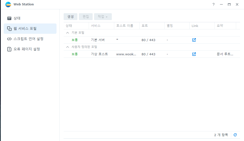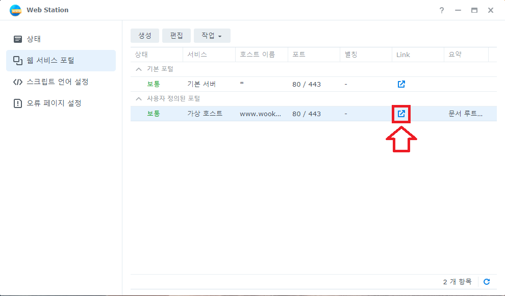 NAS์ Web Station ์คํํด ์ฃผ์ธ์.