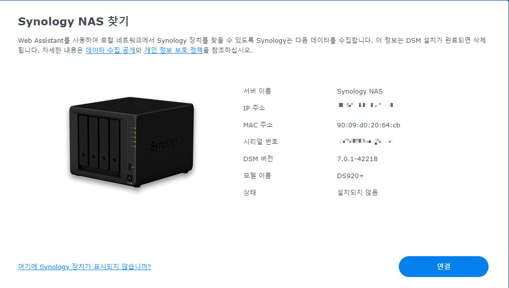 ์ฐ๊ฒฐ ํ์ https://finds.synology.com/์ ๊ฐ์๋ฉด ๋์ LAN๊ณผ ์ฐ๊ฒฐ๋ NAS๋ฅผ ์ฐพ์ ์ ์์ด์!