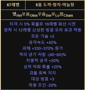 ์กฐํญ๋คํฌ์ ์ข ๊ฒฐ๊ธ ์์ดํ ์ด๋ผ๊ณ ๋ถ๋ฆฌ๋ฉฐ 9๋ ๋ฒจ ๊ด์ (๊ณต๊ฒฉ์๋ ๋ฐ ๋ฐ๋ฏธ์ง ์ด๋ ์ฆ๊ฐ) ํจ๊ณผ๋ฅผ ์ง๋ ์ค๋ผ๋ฅผ ๋ฐ์์ํค๊ธฐ๋๋ฌธ์