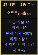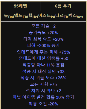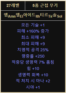 그리고 특정 무기가 아닌 모두가 착용할 수 있는 머리의 룬워드이며 근접 원거리 할 거 없이 초반에 룬만 있다면 무조건 만들어야 하는 필수 룬워드 중 하나!