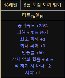 해당 레벨에 25% 달려 및 공격속도까지 버릴 옵션이 없어