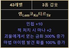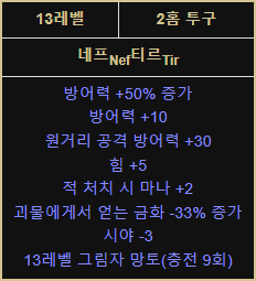 이 갑옷은 초반에 용병저항 맞추기 및 캐릭터 저항에 한 획을 그은 아이템이다.