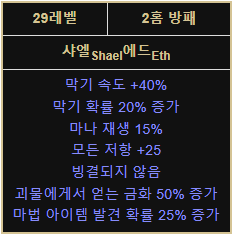 팔라딘 전용방패는 운 좋게 4 소켓이 나오면 영혼을 사용하면 된다. 재료가 나오지 않았을 경우엔 사용하는 걸 권장.