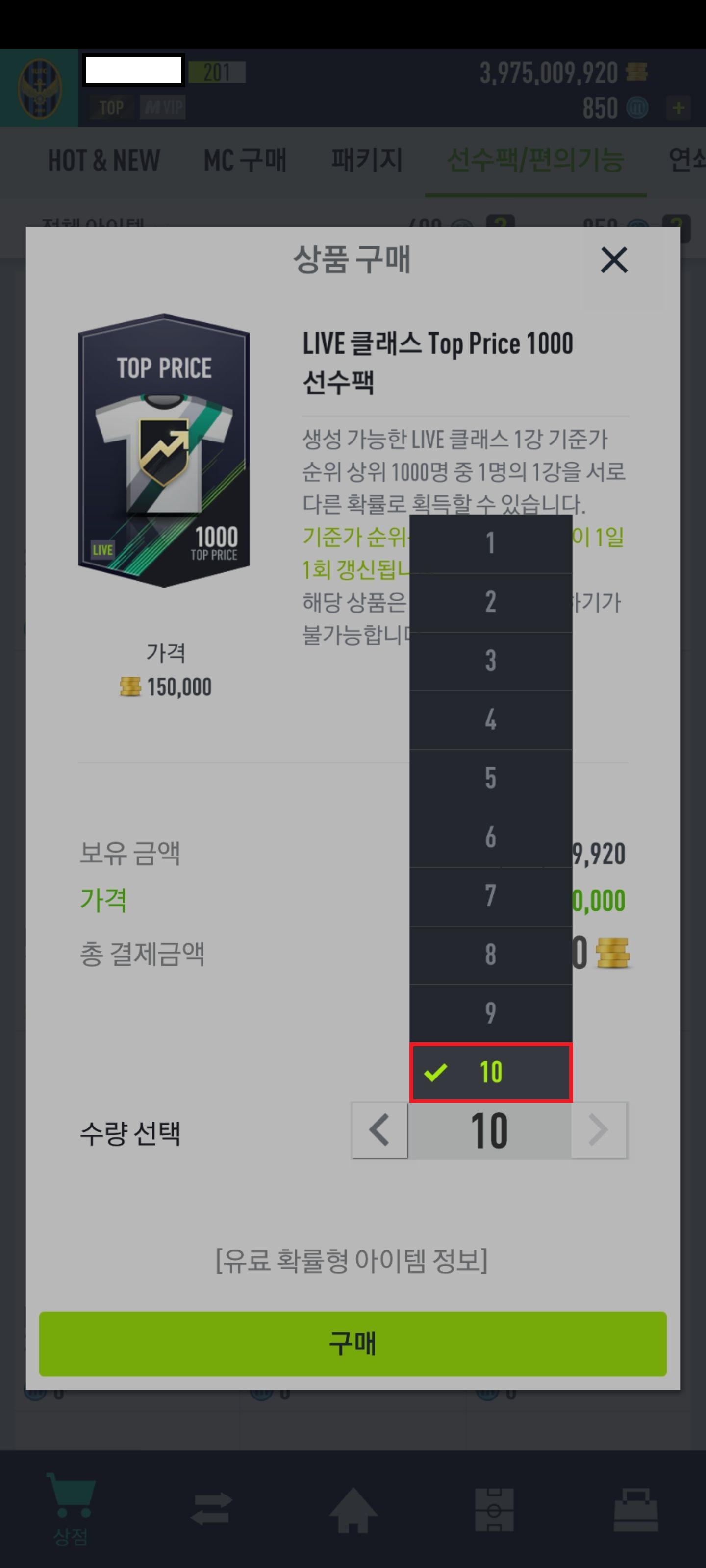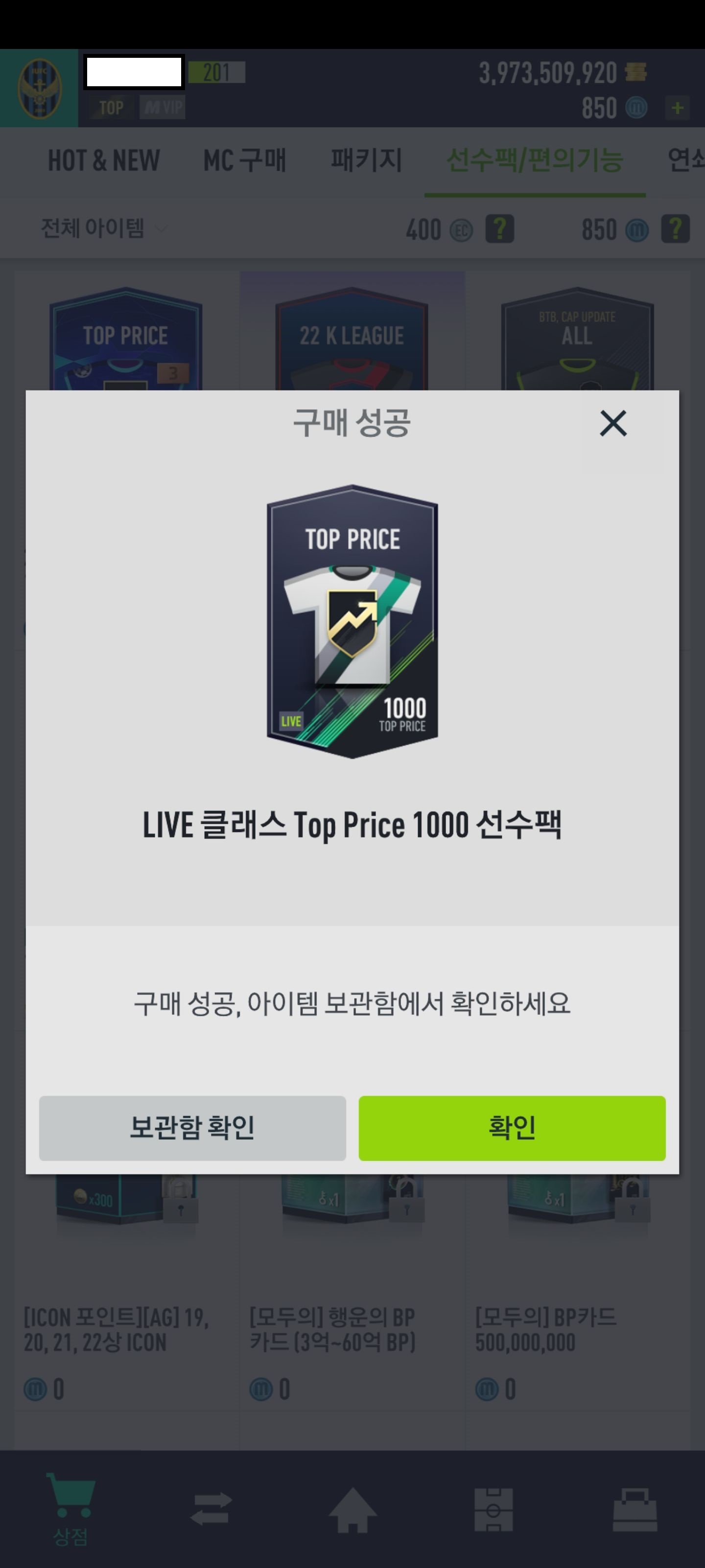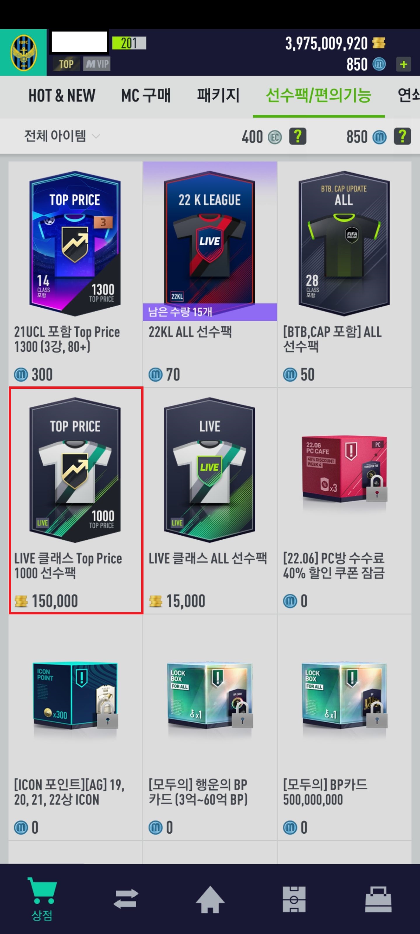 ๋ฉ์ธ ํ๋ฉด์์ ์ข์ธก ์๋ ์์ -> ์ ์ํฉ/ํธ์ ๊ธฐ๋ฅ -> LIVE ํด๋์ค TOP Price 1000 ์ ์ํฉ ๊ตฌ๋งค