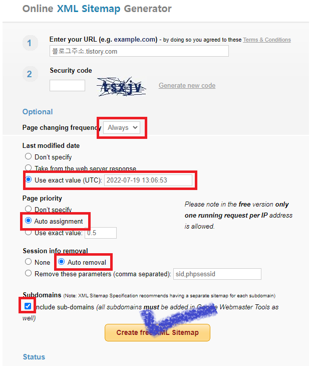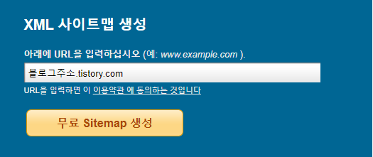 ํด๋น ๋ถ๋ถ์ ๋ธ๋ก๊ทธ ์ฃผ์๋ฅผ ๋ฃ์ผ์๊ณ ๋ฌด๋ฃ Sitemap ์์ฑ์ ๋๋ฌ์ฃผ์ธ์!
