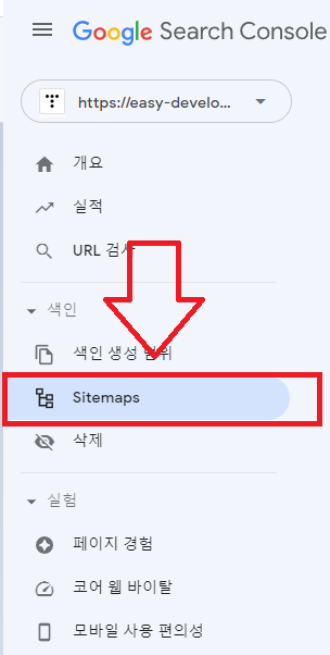 ์์ฑ์ผ๋ก ๋ค์ด์ค์๋ฉด ์ข์ธก์ sitemaps๋ฅผ ํด๋ฆญํด์ค๋๋ค.