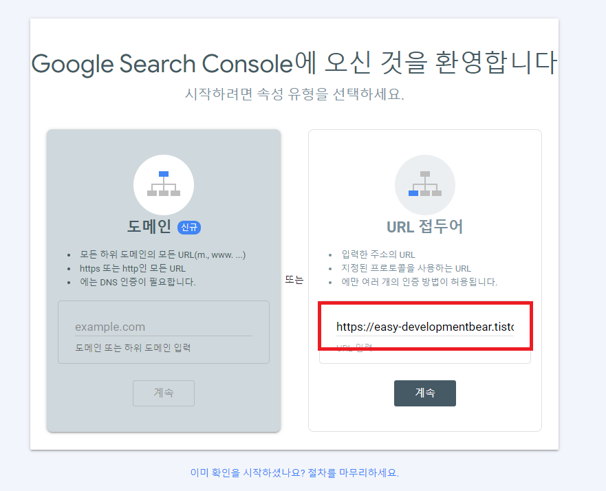 ๋ ๋ค ์ฑ๊ณต์ด ๋ด๋ค๋ฉด ๊ตฌ๊ธ์ ์์ ์ ๋ธ๋ก๊ทธ ์ด๋ฆ์ ์ ๋ ฅํด๋ณด์ธ์.
