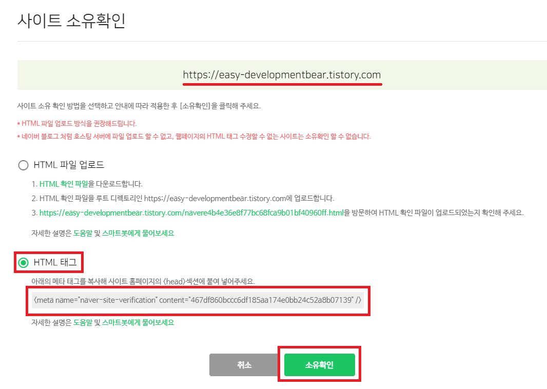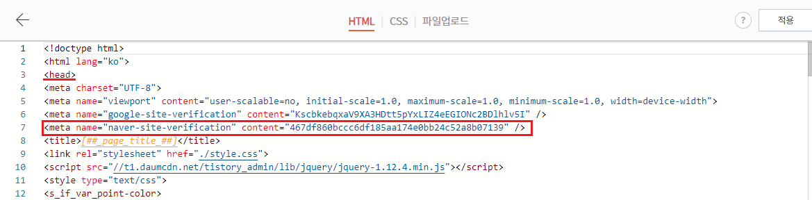 ๋ธ๋ก๊ทธ ์ฃผ์๊ฐ ๋ง๋์ง ํ์ธํด์ฃผ์๊ณ , HTML ํ๊ทธ๋ฅผ ํด๋ฆญ ํ ๋ฉํํ๊ทธ๋ฅผ ๋ณต์ฌ ํ ํฐ์คํ ๋ฆฌ ๋ธ๋ก๊ทธ ๊ด๋ฆฌ ํญ์ผ๋ก ์ด๋ํฉ๋๋ค