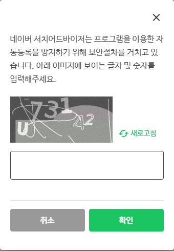 ์๋ ๋ฐฉ์ง ์ ๋ ฅ ํ ํ์ธ ๋๋ฌ์ฃผ์๋ฉด ์์ ์ผ๋ฟ ์ฐฝ๊ณผ ํจ๊ป ์์ ํ์ธ์ด ๋ ๊ฑธ ๋ณด์ค ์ ์์ต๋๋ค.