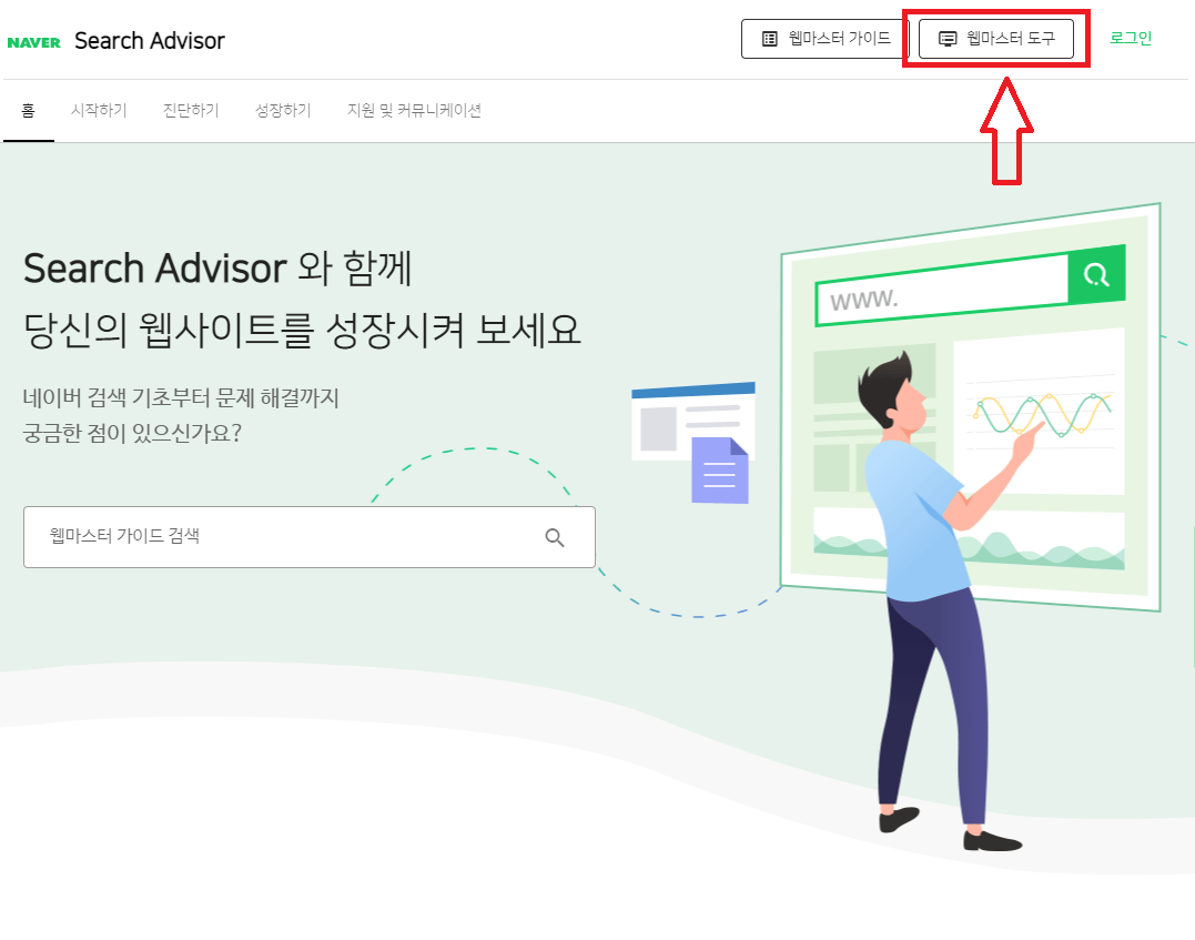 ๋ค์ด๋ฒ ์์น ์ด๋๋ฐ์ด์ ์ ๋ก๊ทธ์ธ → ์น๋ง์คํฐ ๋๊ตฌ ํด๋ฆญ