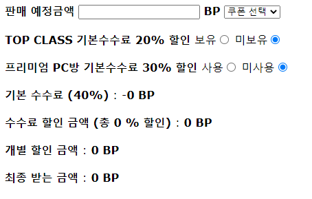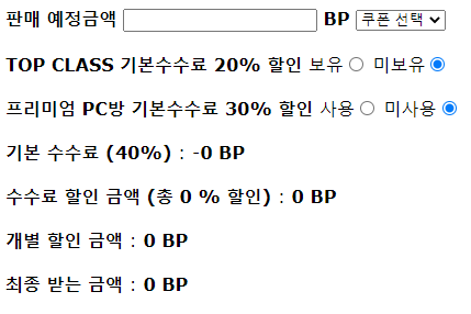 ์์๋ฃ ํ ์ธ ๊ธ์ก (์ด 0 % ํ ์ธ) : 0 BP