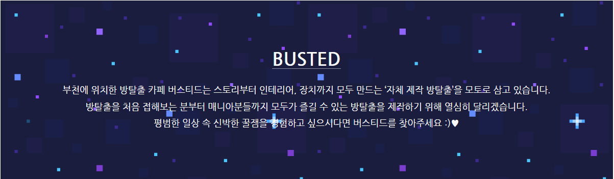๋ถ์ฒ์ ์์นํ ๋ฐฉํ์ถ ์นดํ, BUSTED! ์ผ์ ์ ๊ฟ์ผ์ ์ ๊ณตํด๋๋ฆฌ๋ ๋์ด ๊ณต๊ฐ์ ๋๋ค.